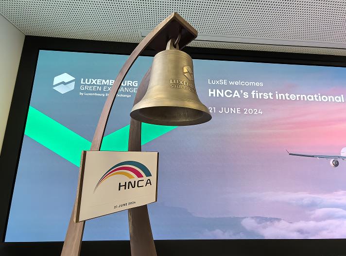 當地時間6月21日上午,中豫航空集團以河南航投為主體發行的3年期人民幣境外債券上市儀式在盧森堡證券交易所舉行。這是中國企業在歐洲發行的首只支持可持續航空燃料(SAF)的綠色債券,也是河南企業發行的首只離岸人民幣綠色債券,鄭盧“空中絲路”資金融通實現新突破。