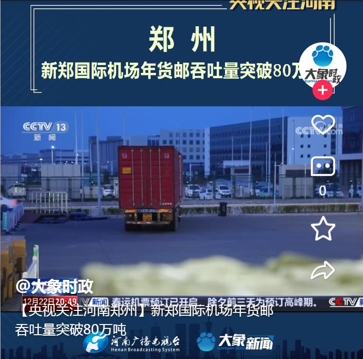 【央視關注河南】新鄭國際機場年貨郵吞吐量突破80萬噸