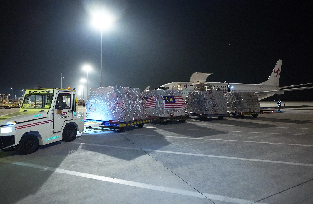 8月25日上午,吉隆坡-鄭州鮮食榴蓮首航接機儀式在鄭州機場舉行,馬來西亞首批鮮食榴蓮進入中國市場,中馬航空貨運樞紐項目加速推進。中豫航空集團黨委書記、董事長張明超,總經理、黨委副書記、副董事長柳建民;馬來西亞駐華大使館工作人員,馬來西亞榴蓮廠商公會代表和榴蓮貿易供應鏈企業代表參加了儀式。