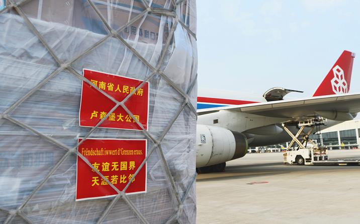 2020年2月,疫情爆發初期,盧森堡貨航和河南航投共同積極加入抗“疫”戰斗,除了為中國員工提供口罩、消毒棉片、防護服等物資支援外,還在原定的春節假期期間,加運了95噸醫療物資馳援中國抗“疫”一線,并根據國內外市場的需要有序增加運力。當年3月,河南省委、省政府為盧森堡緊急籌措了包括4500件醫用防護服、50萬只醫用外科口罩、5700只醫用N95口罩、10萬雙醫用手套、600只額溫槍、2萬瓶洗手液、1080副醫用護目鏡等在內的首批醫療物資,并通過鄭州—盧森堡貨運航班直接運抵盧森堡。鄭盧“空中絲綢之路”被盧森堡政府譽為“盧森堡及其他歐洲地區的生命線,是一條雪中送炭的空中橋梁。”在這條絲路的連接下,豫盧雙方成為共建共享、休戚與共的“一家人”。